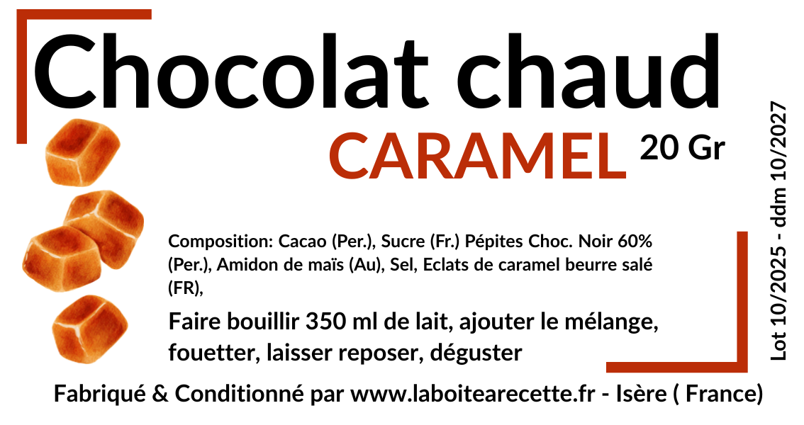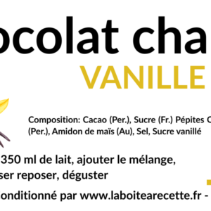 contient du cacao 100% bios & équitables, des pépites de chocolat noires 60% sans lécithine de soja bios & équitables, du sucre français, un peu d’amidon de mais et un epoint ed esel de guérande.
