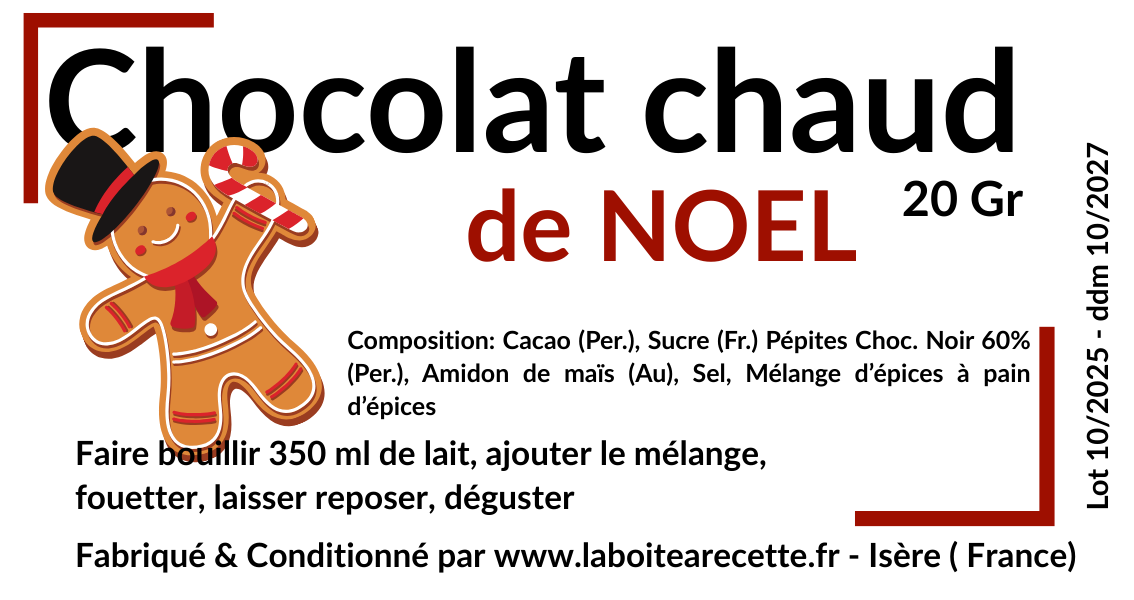 contient du cacao 100% bios & équitables, des pépites de chocolat noires 60% sans lécithine de soja bios & équitables, du sucre français, un peu d’amidon de mais et un epoint ed esel de guérande.